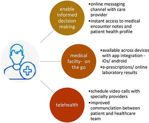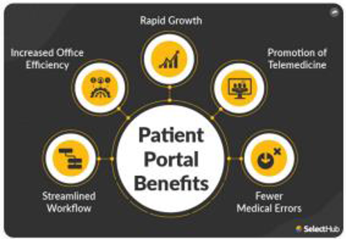 "Electronic health records have revolutionized communication and coordination of care in healthcare settings", however they are only a repository of patient information and provide an interface for healthcare operations with individual modules to be integrated*2 . EHRs over the years have shown promise to improve patient engagement and outcomes from a care provider perspective. On the other hand, is the patient portal which gives care seekers 24*7 access to their medical and personal health information including recent doctor visit history, appointment booking, insurance, payments and more across any device with internet using their login credentials. Using the patient portal one can access and update their personal information including updates like address and contact, access details like prescription refills and laboratory results*3 . Some of the key benefits of a patient portal include: