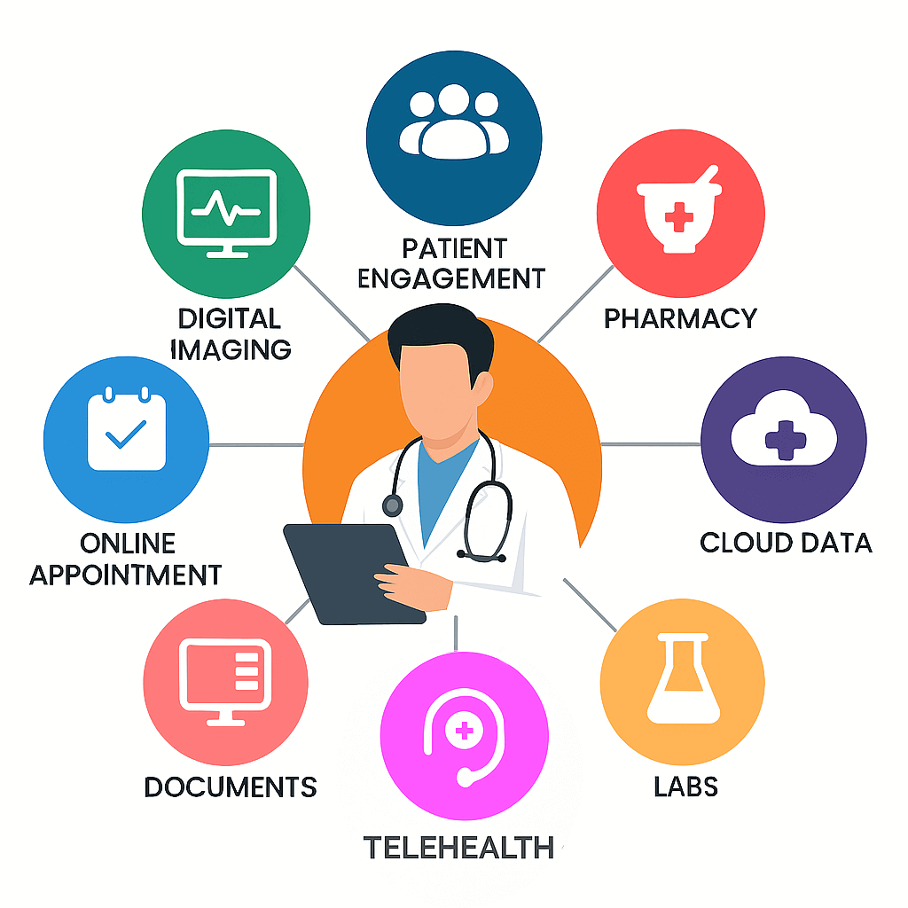 The platform caters to the needs of diverse users, improve operational agility, and support a more connected, patient-centric experience in both clinical and non-clinical settings. Other device integration & capability highlights the system's commitment to accessibility, flexibility, and modern user experience through a multi-platform approach. By offering mobile compatibility, the system allows healthcare providers, administrators, and patients to access critical information, perform tasks, and receive updates in real time from anywhere, enhancing responsiveness and efficiency. Cloud-based support ensures that data is securely stored, easily accessible, and scalable, reducing dependence on physical infrastructure while enabling seamless collaboration across locations. Meanwhile, kiosk interfaces provide an intuitive, self-service experience for patients-streamlining tasks such as appointment check-ins, form submissions, and information retrieval, thereby reducing wait times and administrative burden.